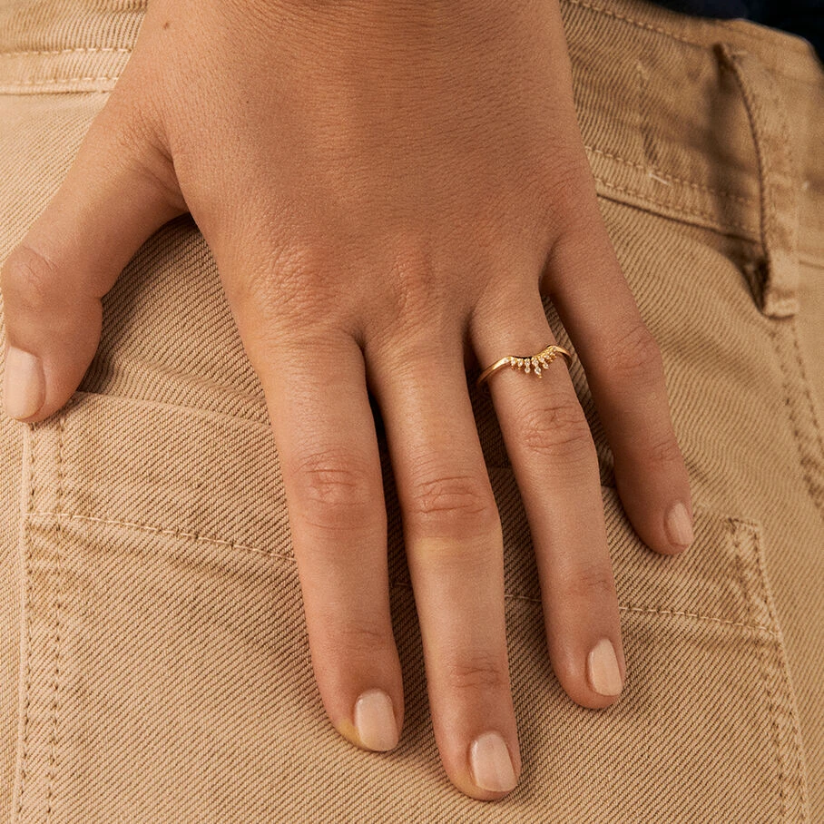 Bague en argent véritable 925/1000 et dorée 750/1000, représentant une couronne de cils sertie d’oxydes de zirconium. Cette bague peut être portée seule ou bien en juxtaposition avec les bagues œil LUCKY EYE!