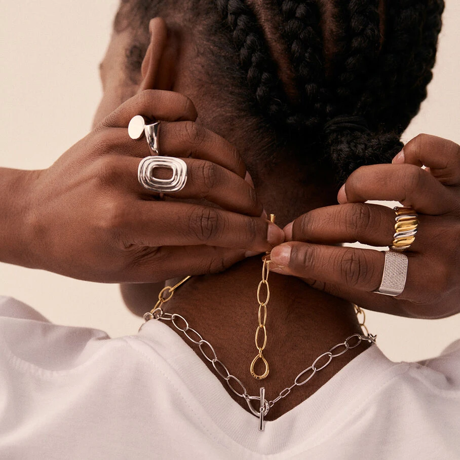 Bague toi& moi, en argent véritable, avec des extrémités planes. Un design qui donnera du volume à vos mains !