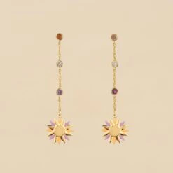 Boucles d’oreilles en laiton doré 750/1000, chaine et oxydes de zirconium