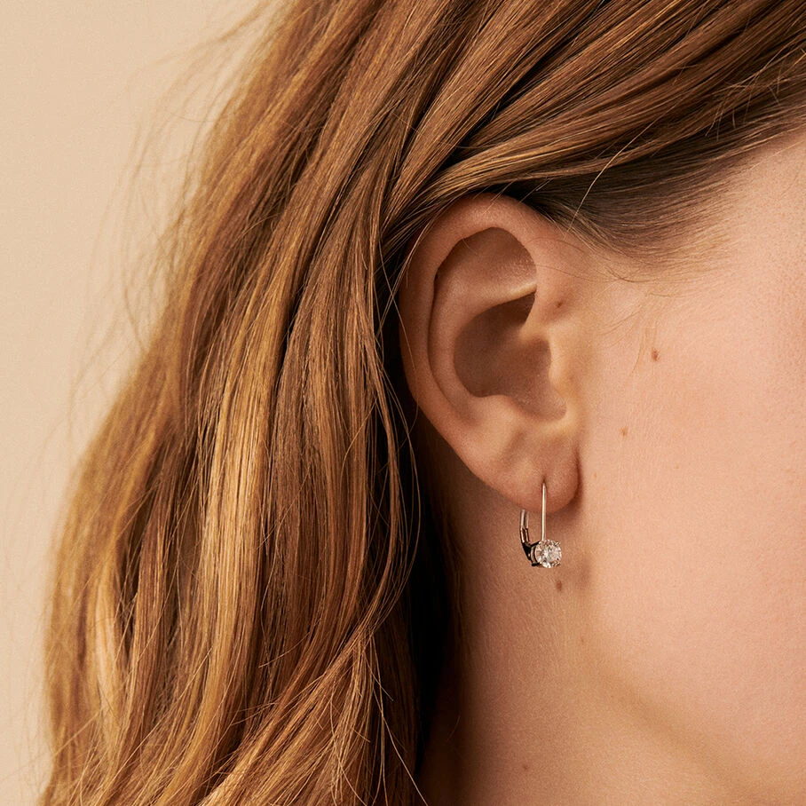 Boucles d’oreilles dormeuses, en argent véritable, avec un oxyde de zirconium griffé de 5mm de diamètre