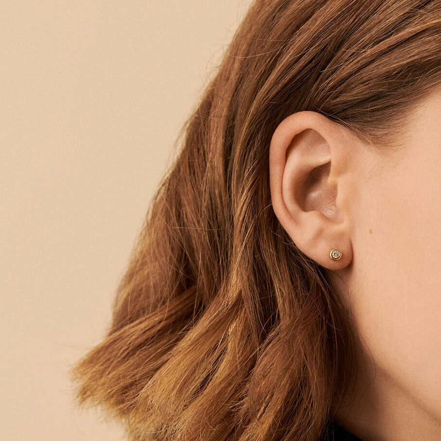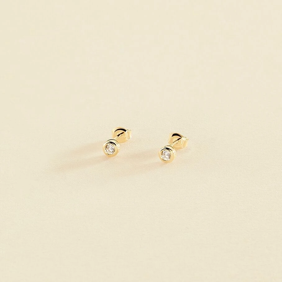 Boucles d’oreilles puces en argent véritable 925/1000, dorées 750/1000, ornées d’oxydes de zirconium sertis clos