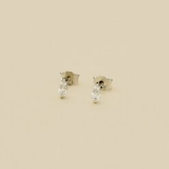 Boucles d’oreilles puces, en argent véritable, serties de deux oxydes de zirconium