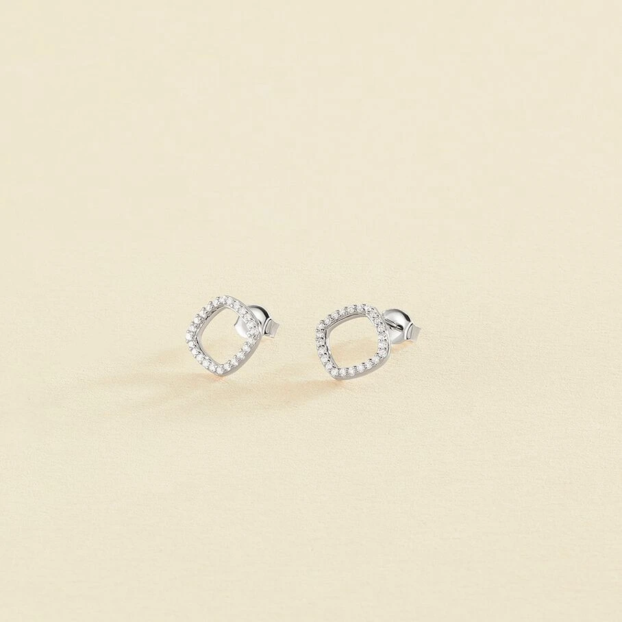 Boucles d’oreilles puces en argent véritable ornées de carrés évidés pavés d’oxydes de zirconium