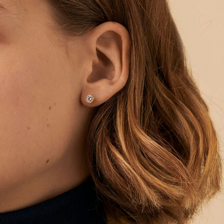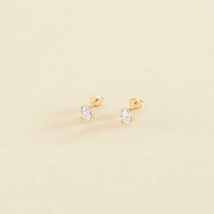 Boucles d’oreilles puces, en argent véritable dorées 750/1000, ornées d’oxydes de zirconium griffés de 5 mm