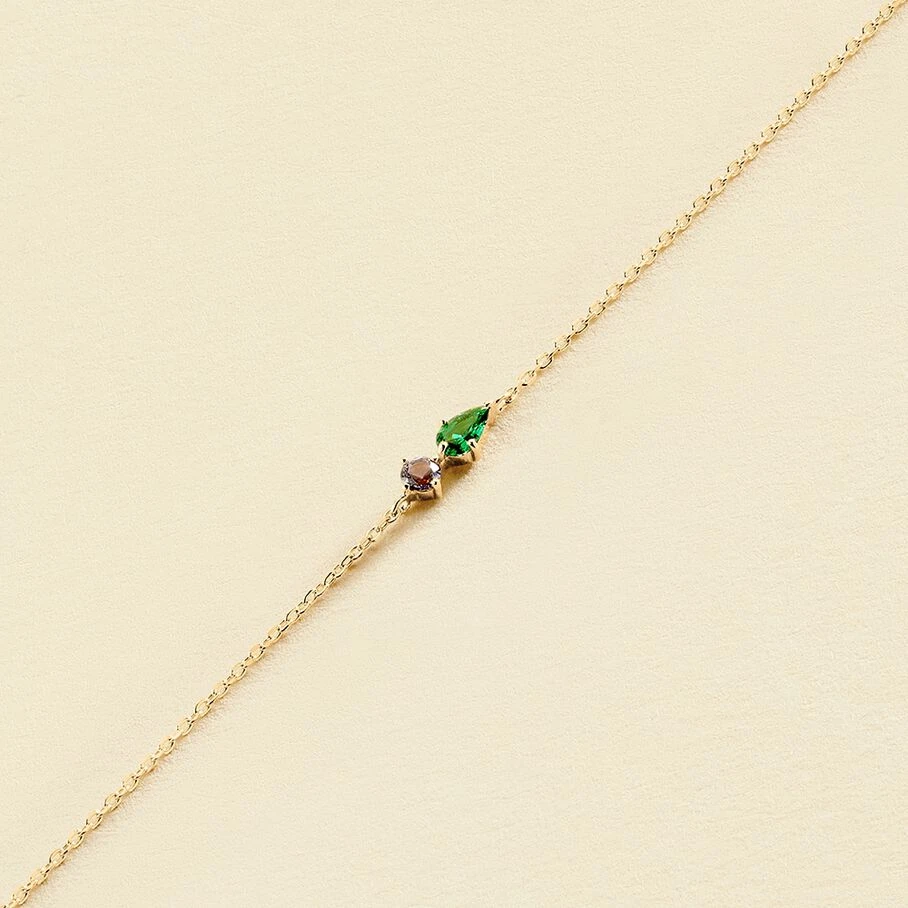 Bracelet chaine, en argent véritable doré 750/1000, avec un oxyde de zirconium en forme de goutte et un de forme ronde