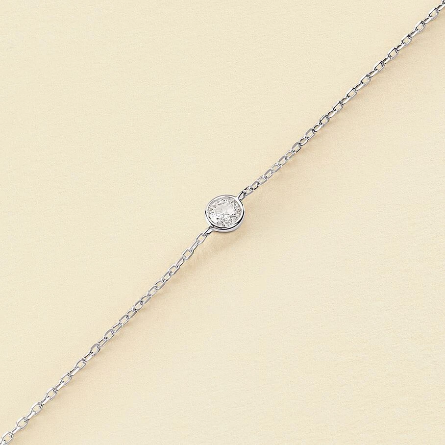 Bracelet souple en argent véritable orné d’un oxyde de zirconium serti clos