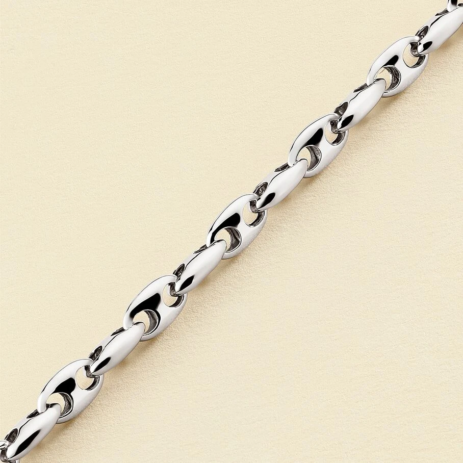 Bracelet souple en argent véritable, chaîne avec maillons en forme de grains de café.