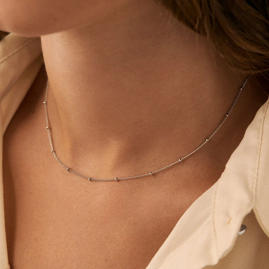 Chaîne courte en argent véritable, chaîne forçat et mini boules