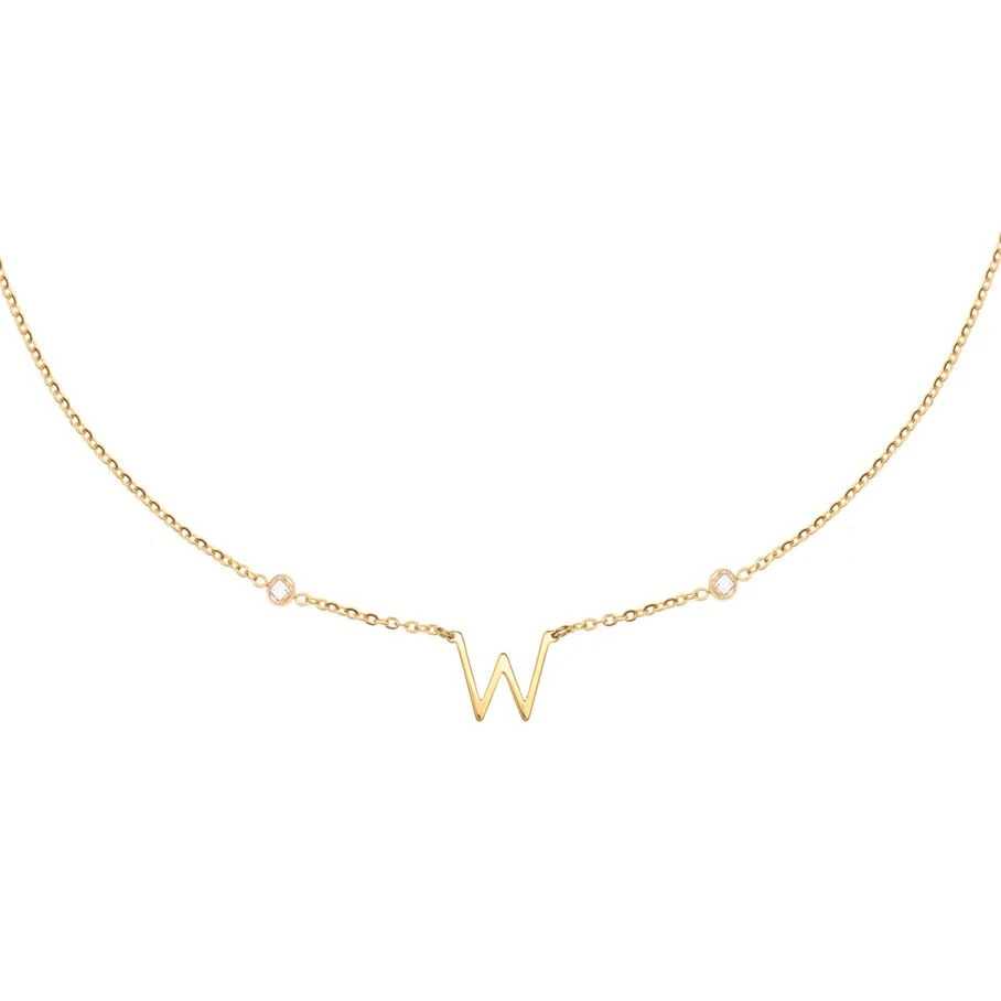 Collier fin composé de la lettre W et de deux oxydes de zirconium. Longueur: 42cm
