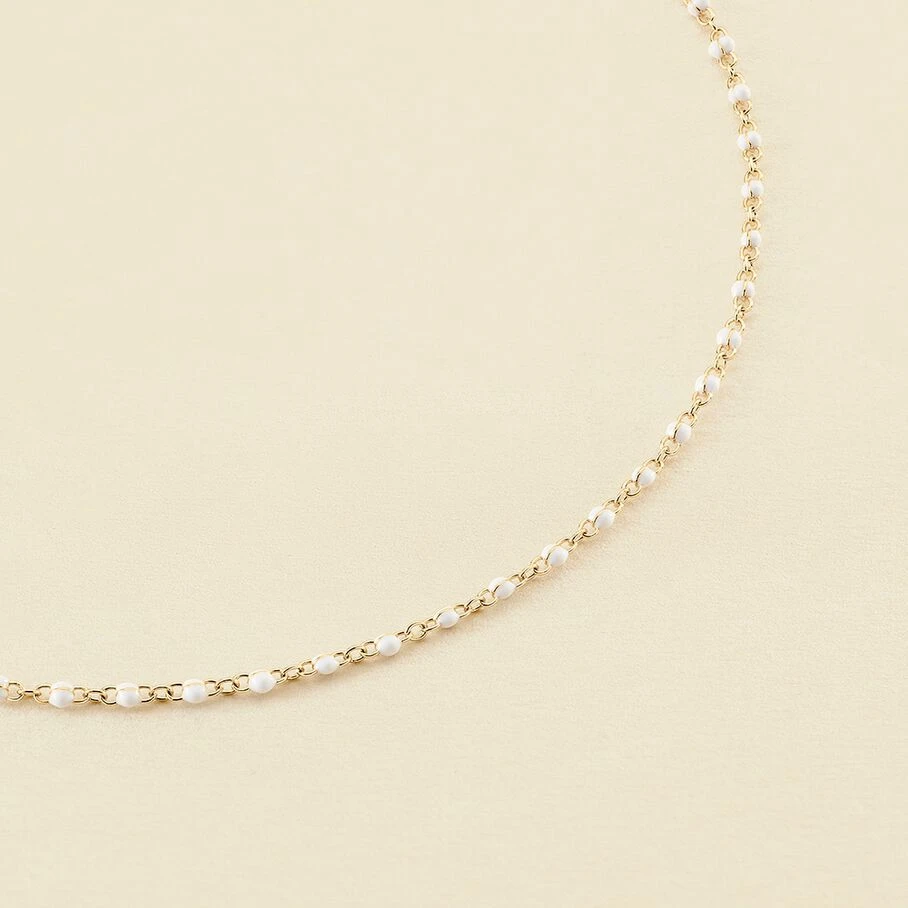 Collier court, en laiton doré 750/1000, perles d’émail sur toute la longueur