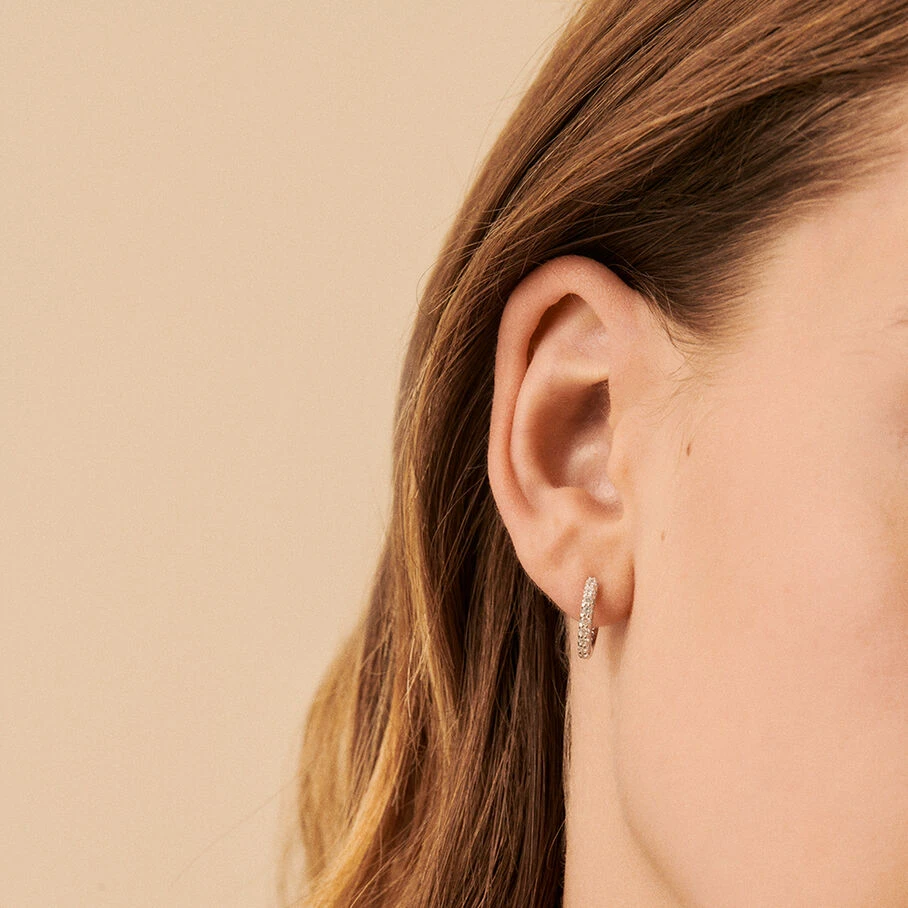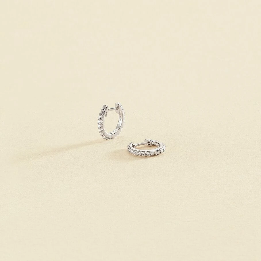 Boucles d’oreilles mini-créoles en argent véritable pavées d’oxydes de zirconium