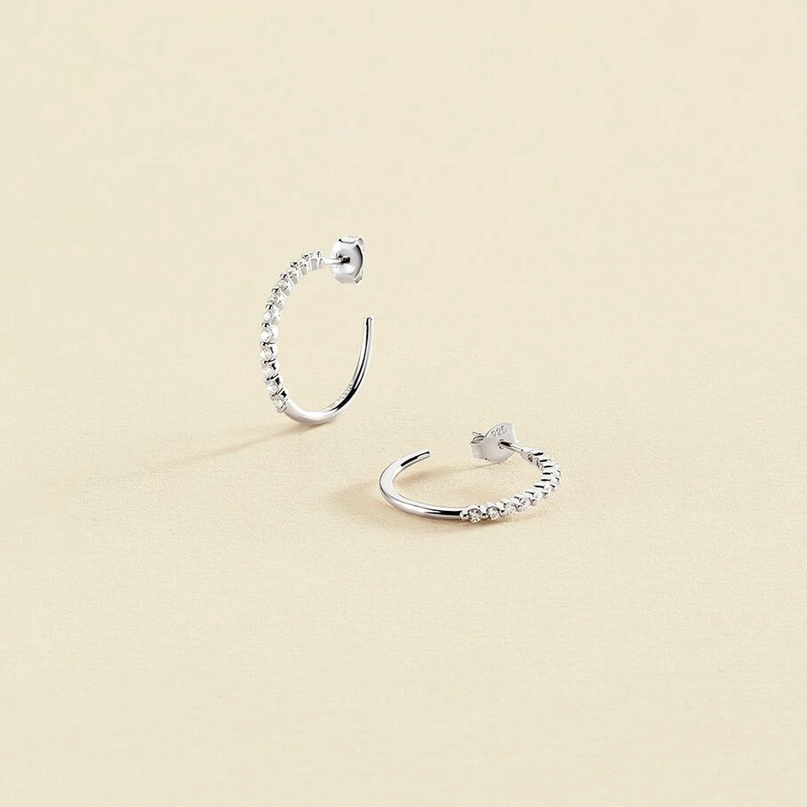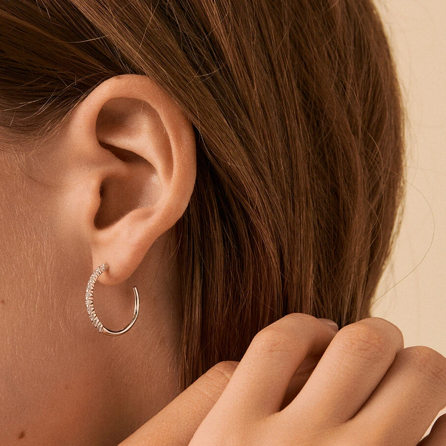 Créoles de 20mm de diamètre, en argent 925/1000, sur laquelle ont été sertis clos une série d’oxydes de zirconium
