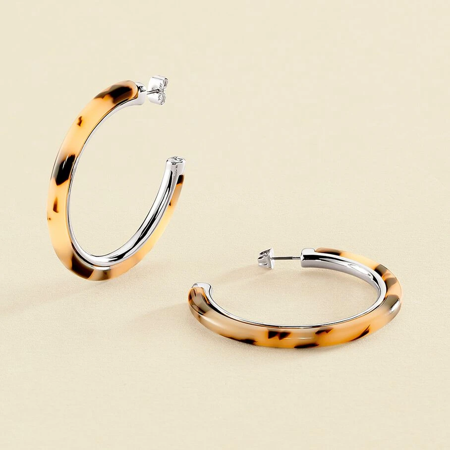 Boucles d’oreilles créoles de 45 mm de diamètre en laiton et acétate de couleur