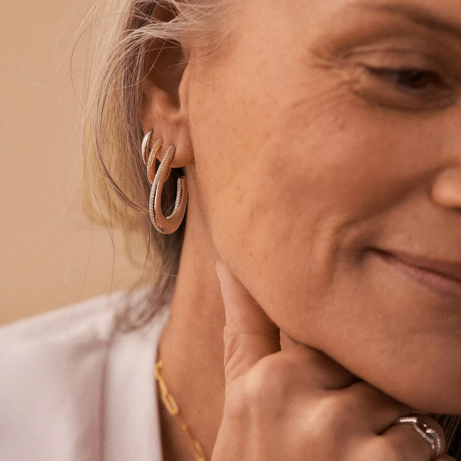 Créoles, grand modèle, en argent 925/1000, représentant une demi goutte et dont la tranche est sertie d’oxydes de zirconium