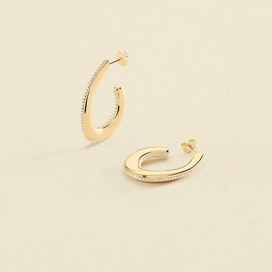 Créoles, grand modèle, en argent 925/1000 et dorées 750/1000, représentant une demi goutte et dont la tranche est sertie d’oxydes de zirconium
