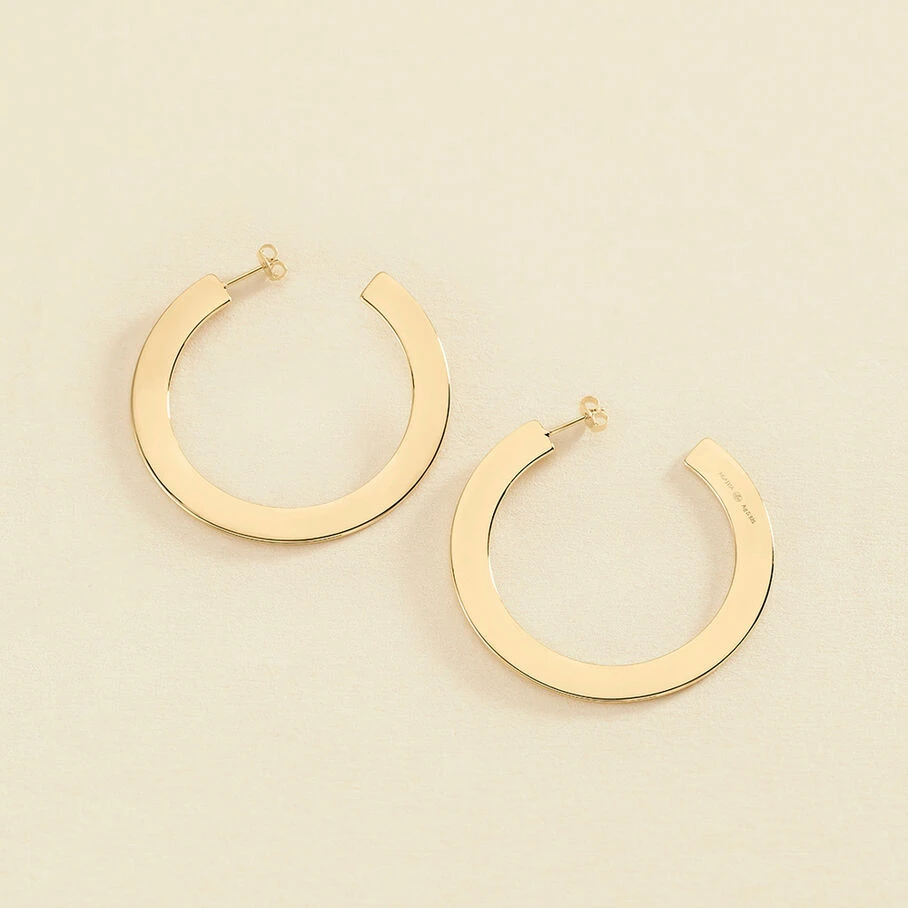 Créoles avec un fil plat, en argent véritable doré 750/1000
