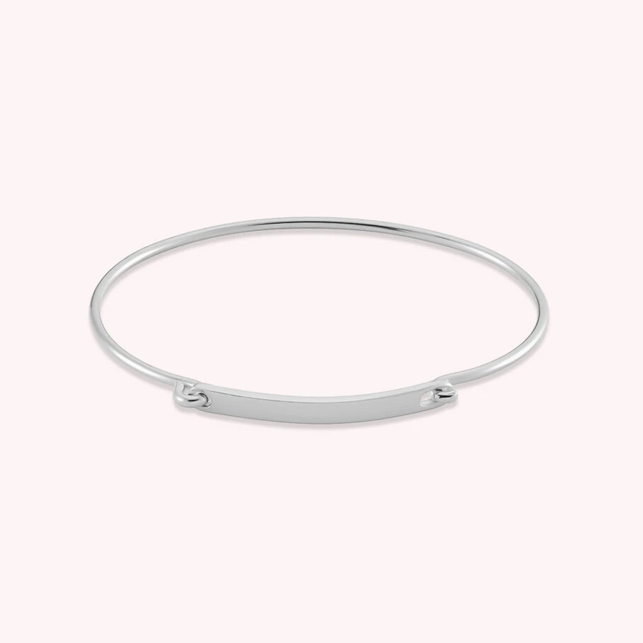 Bracelet jonc en argent véritable avec une plaque mobile sur laquelle les charms peuvent se cumuler.