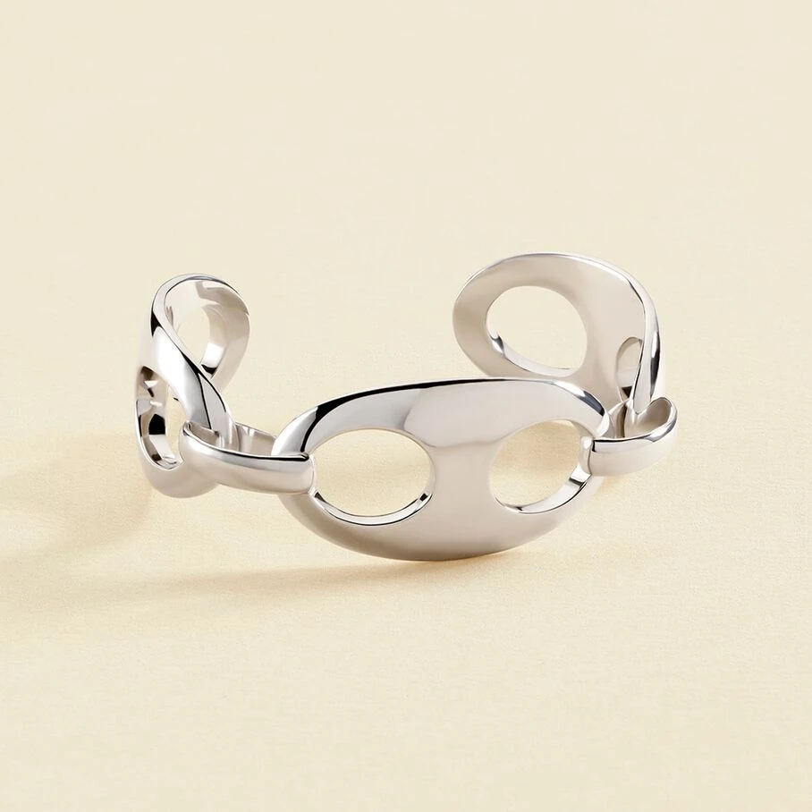 Jonc en argent véritable avec maillons rigides en forme de grains de café