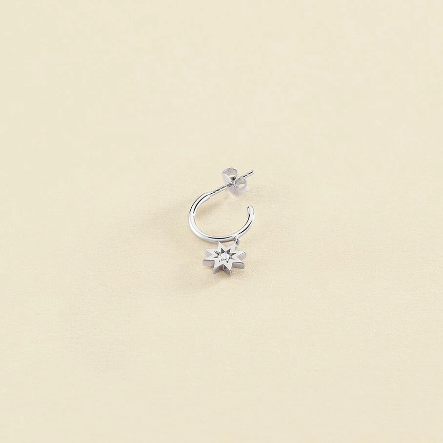 Créole, en argent 925, grande étoile avec un oxyde de zirconium au centre. A l’unité pour mieux les mixer et les accumuler.