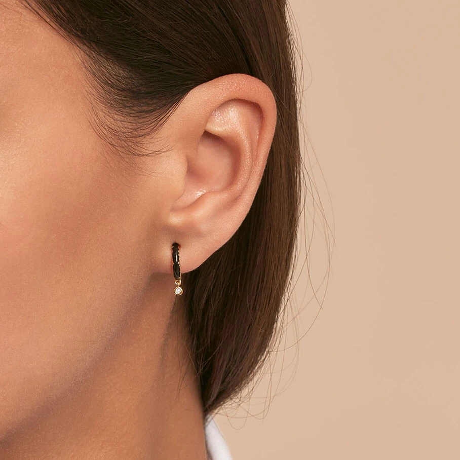 Mini créole argent doré 750/1000 sublimée par l’émail et l’oxyde de zirconium serti en pampille. A l’unité, pour mieux les mixer et les accumuler.