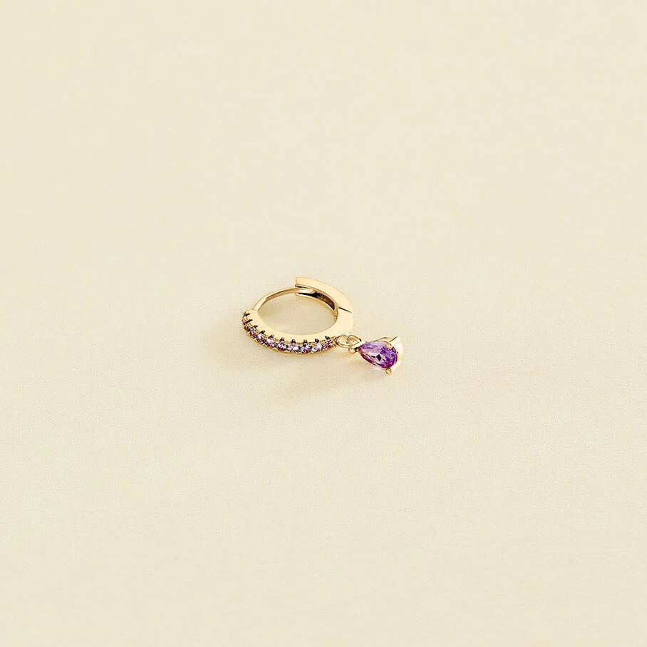 Mini créole en argent doré 750/1000 pavée d’oxydes de zirconium et un oxyde de zirconium en forme de navette en pampille. A l’unité, pour mieux les mixer et les accumuler.