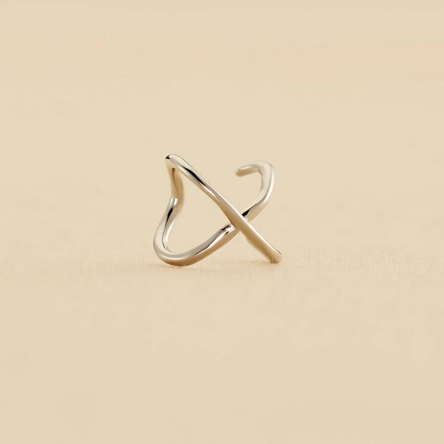 Faux piercing en argent véritable, bague d’oreille en fils croisés. A l’unité, pour mieux les mixer et les accumuler.