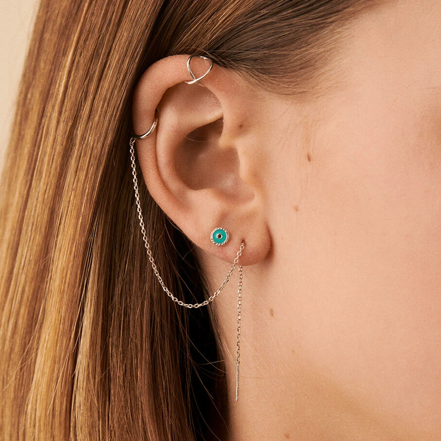 Boucle d’oreille chaine qui s’accroche en haut de l’oreille par un faux piercing, en argent véritable. Vendu à l’unité pour mieux les mixer et les accumuler.
