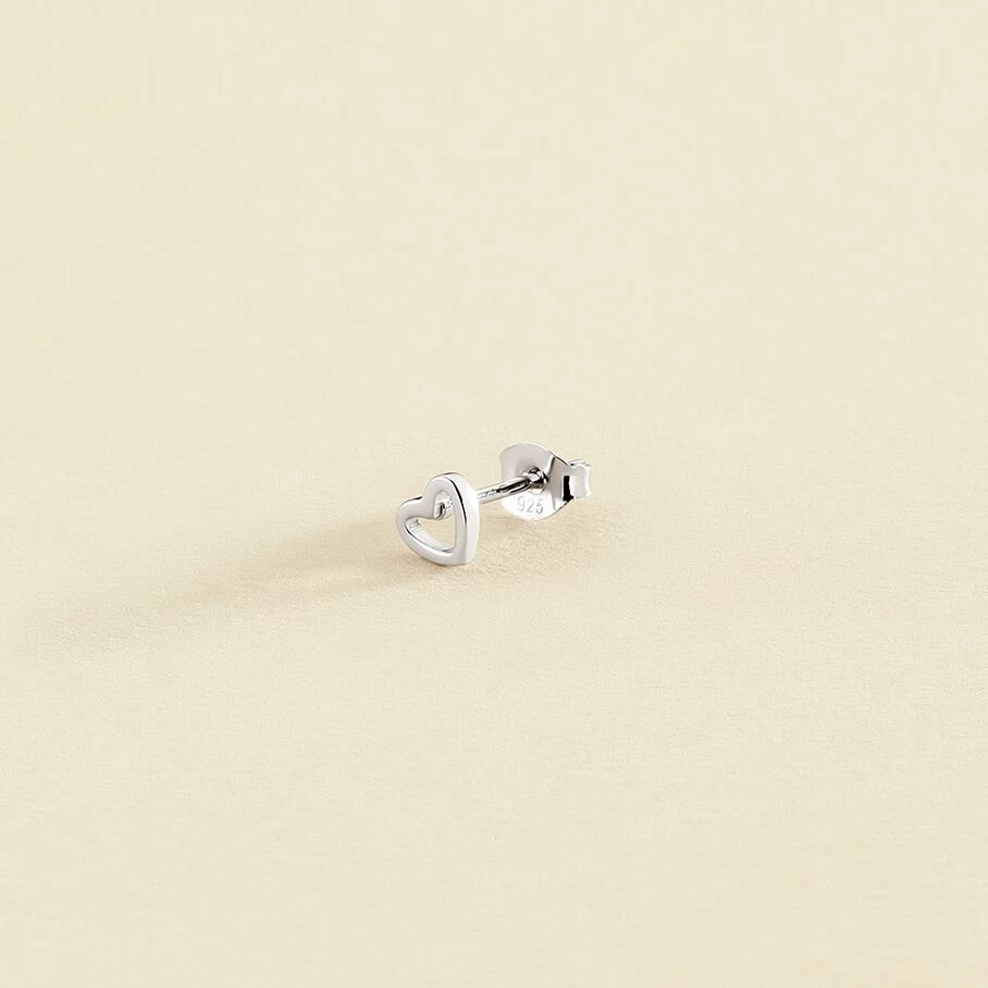 Boucle d’oreille puce en argent véritable en forme de coeur évidé. A l’unité, pour mieux les mixer et les accumuler.