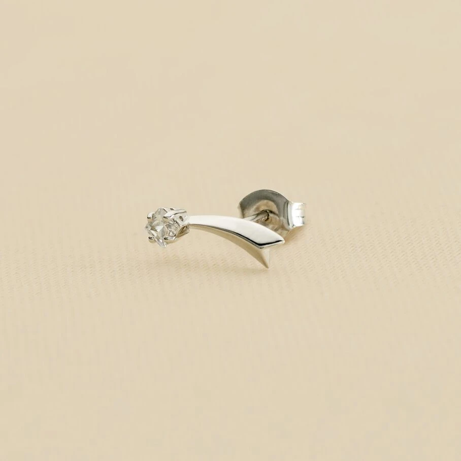 Boucle d’oreille puce, en argent 925, étoile filante avec un oxyde de zirconium. A l’unité pour mieux les mixer et les accumuler.