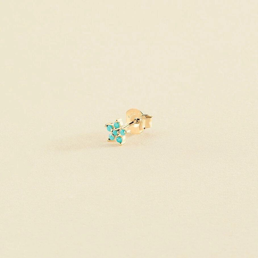 Boucle d’oreille puce en argent véritable doré 750/1000 en forme de fleur pavée d’oxydes de zirconium. A l’unité, pour mieux les mixer et les accumuler.