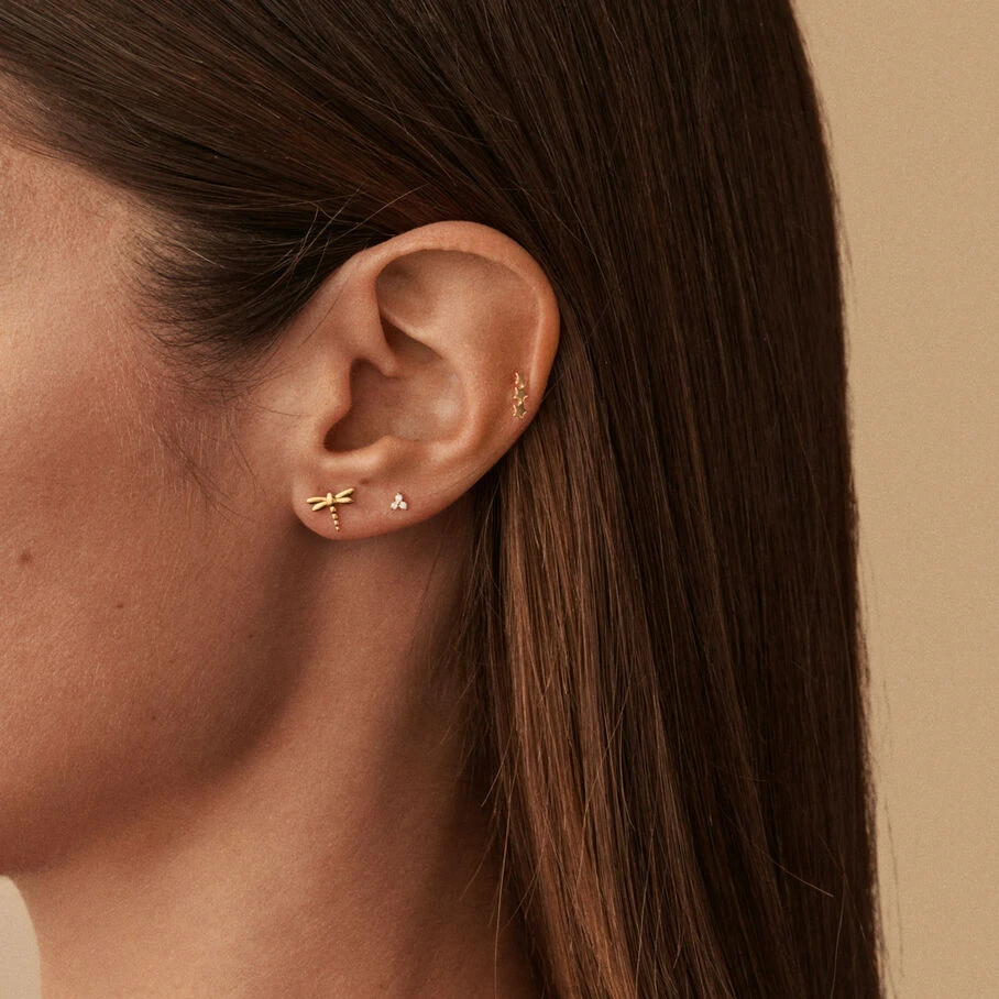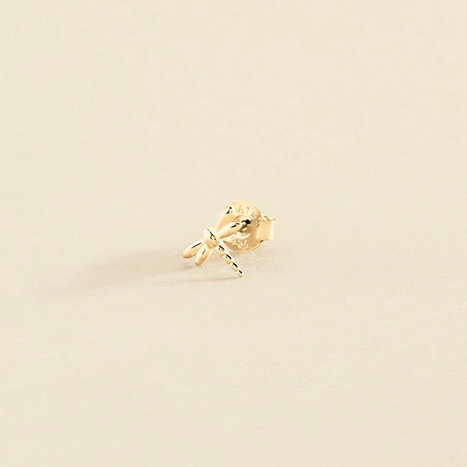 Boucle d’oreille puce en argent véritable doré 750/1000 en forme de libellule. A l’unité, pour mieux les mixer et les accumuler.