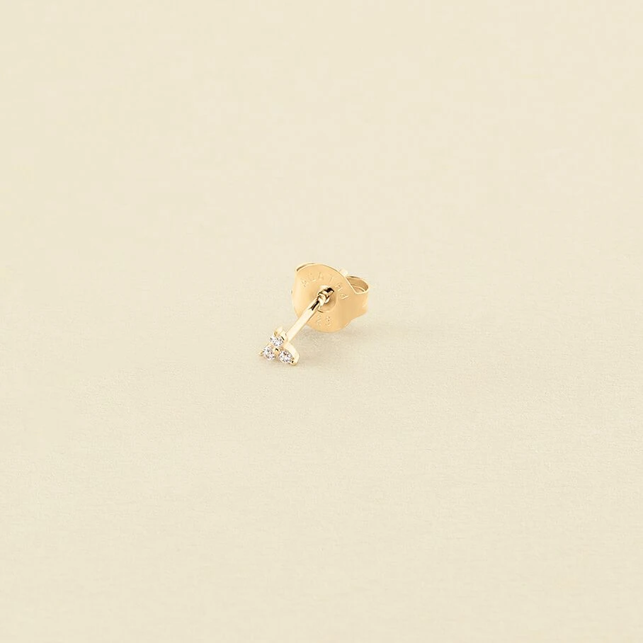 Boucle d’oreille puce en argent véritable doré 750/1000 ornée de trois oxydes de zirconium en triangle. A l’unité, pour mieux les mixer et les accumuler.