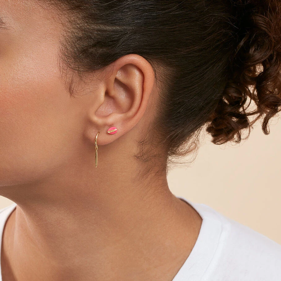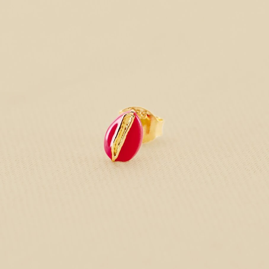 Boucle d’oreille puce à l’unité, en argent 925/1000 doré 750/1000, en forme de coquillage cauri. La délicate couche d’émail rose apportera une touche de fataisie à votre look !