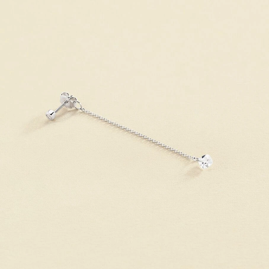 Boucle d’oreille puce boule et chaine accrochée au papillon avec un oxyde de zirconium en forme de coussin percé au bout de la chaine, en argent véritable. Vendu à l’unité pour mieux les mixer et les accumuler