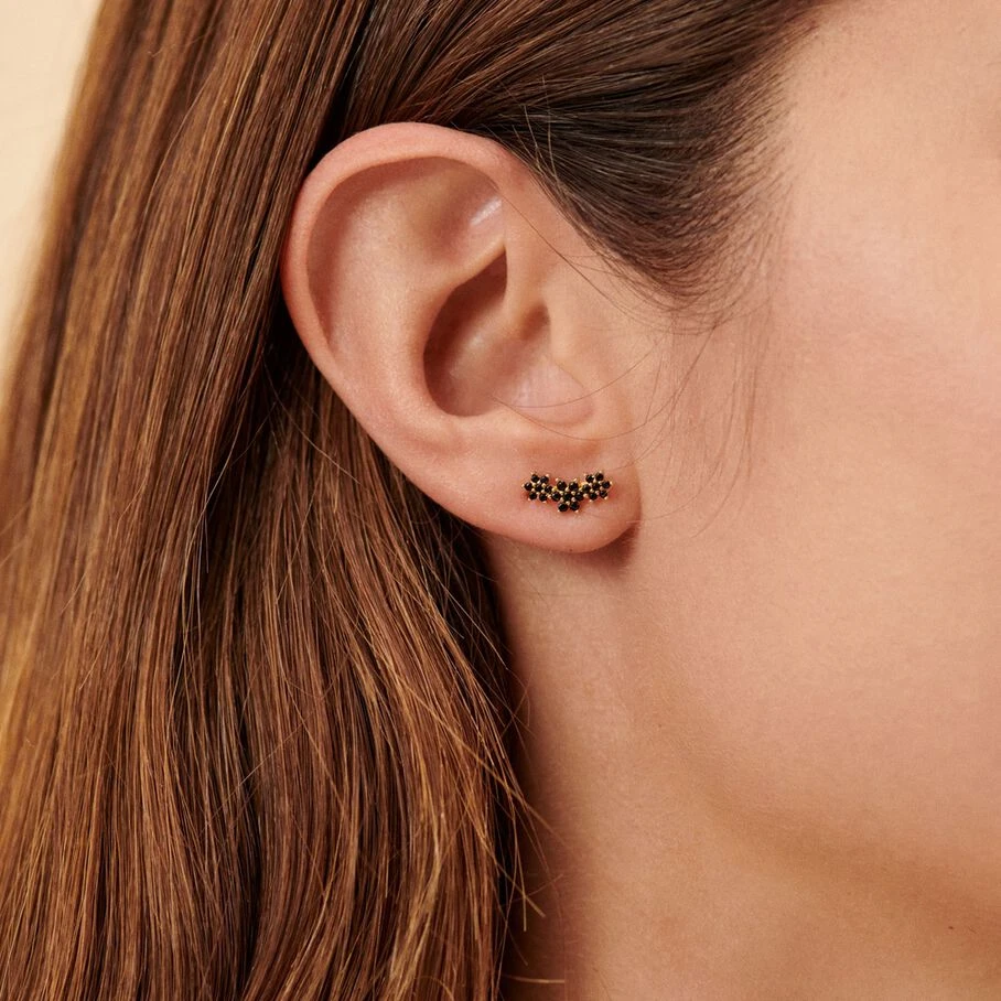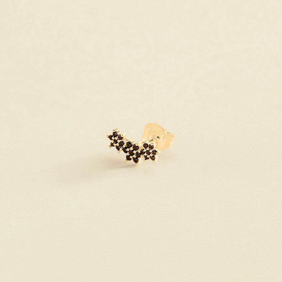 Boucle d’oreille puce argent doré 750/1000 en forme de trois fleurs pavées d’oxydes de zirconium. A l’unité, pour mieux les mixer et les accumuler.